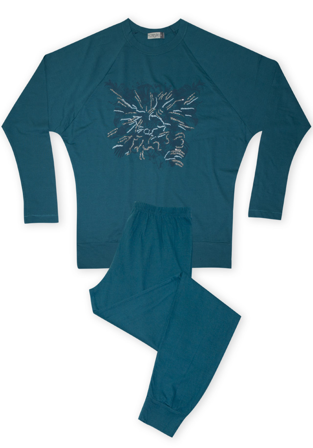 Тази стилна дамска пижама е изключително удобна. Изработена е от изключително качествени естествени материали. Притежава антибактериална защита и не позволява да се развиват микроорганизми в тъканта.