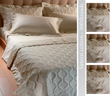 Спален комплект и шалте Caroline е от колекцията SATEEN EMBROIDERY на гръцката фирма NEF NEF,