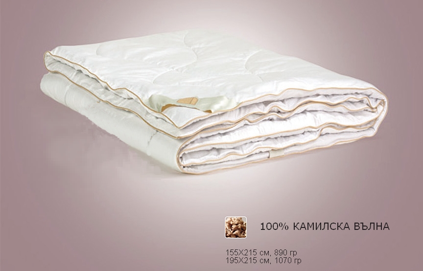 Завивка Camello , с пълнеж от 100% камилска вълна, притежава уникални свойства. Осигурява топлина през зимата и абсорбира влагата през лятото. Тя е много мека и лека.